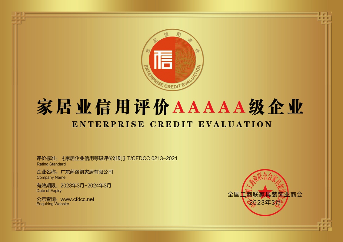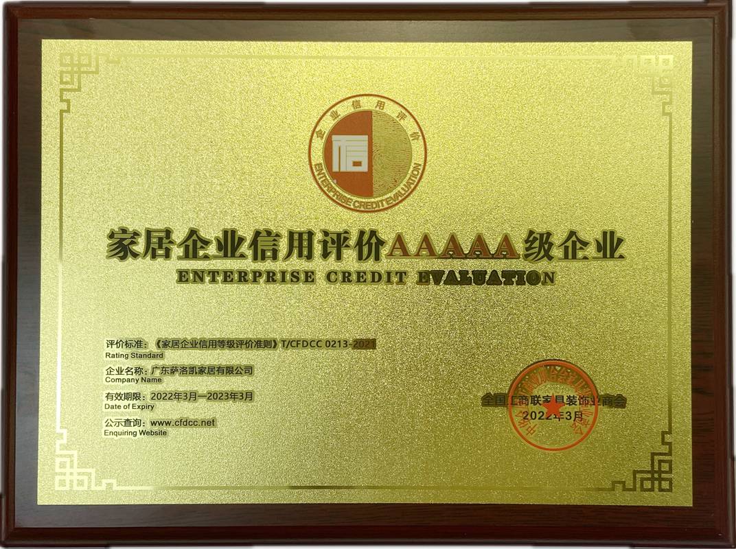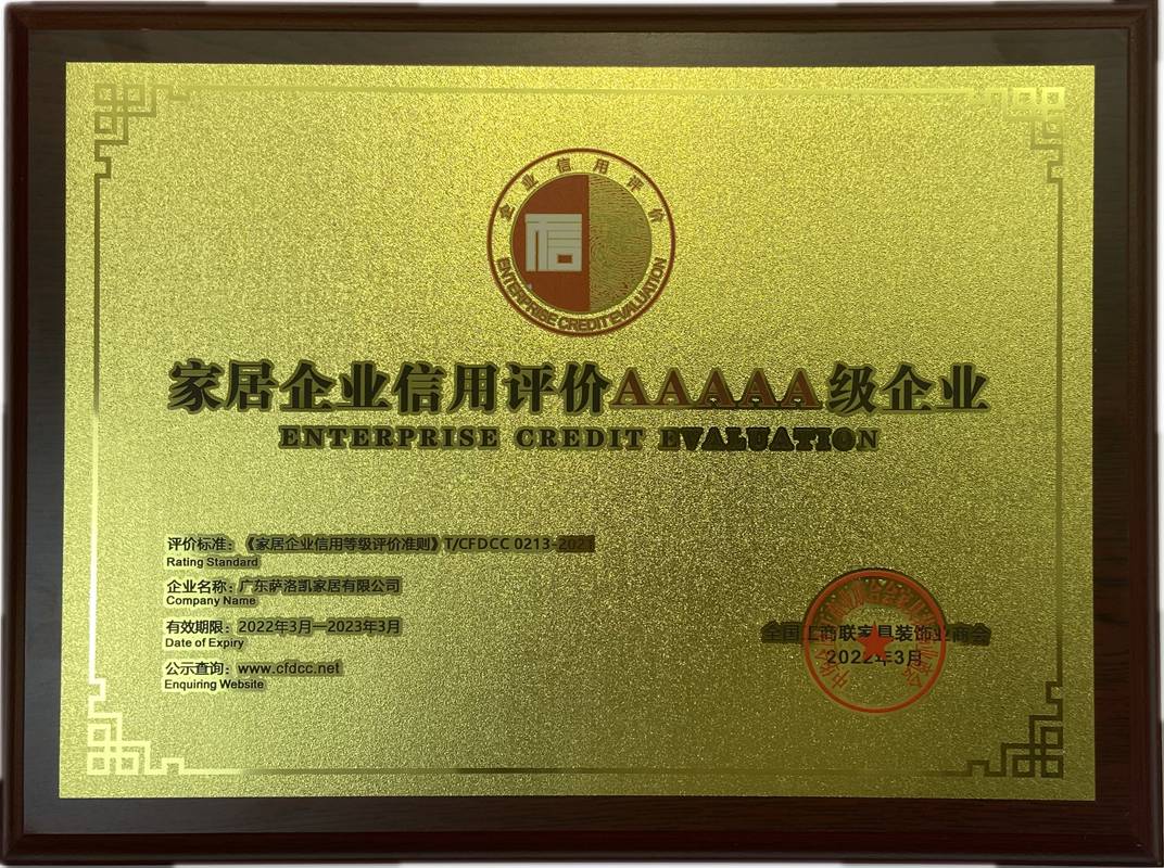 家居業(yè)信用評(píng)價(jià)5A級(jí)企業(yè)有效期至2024年