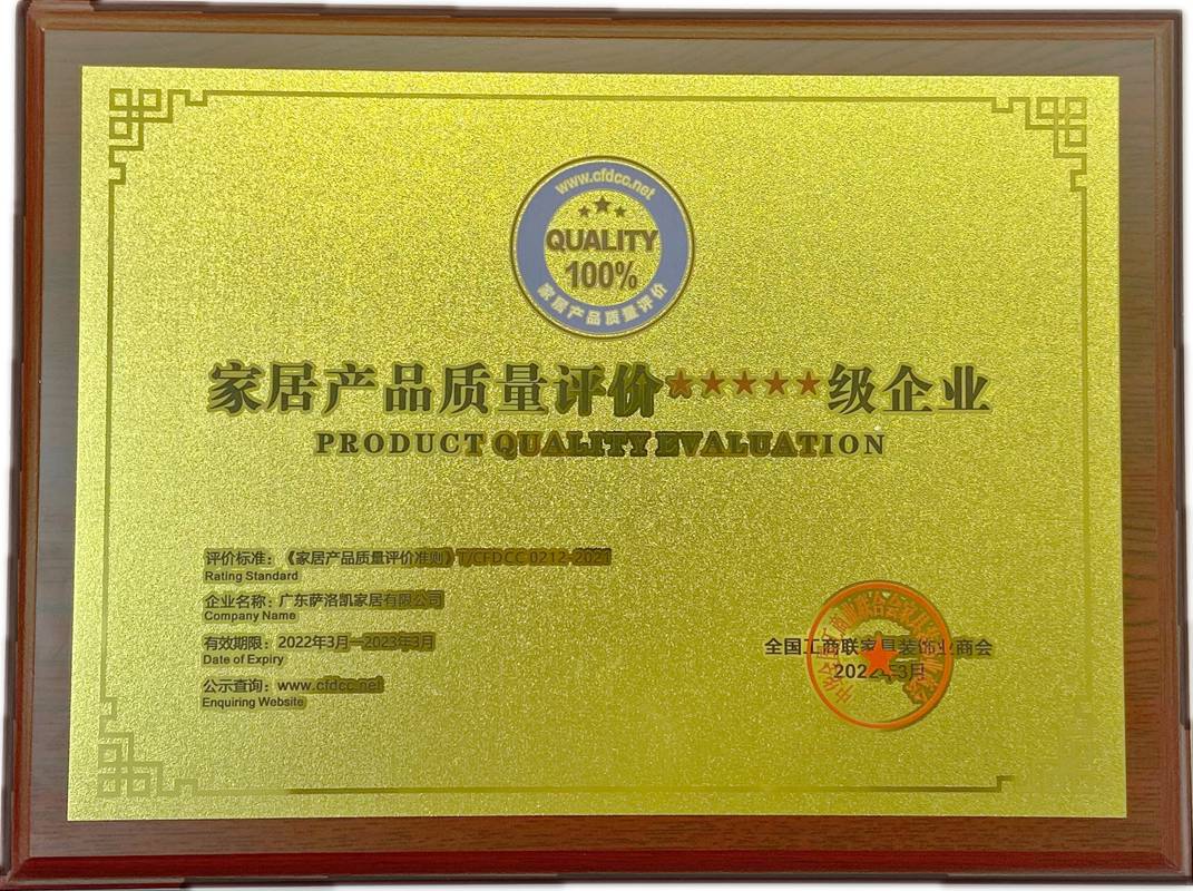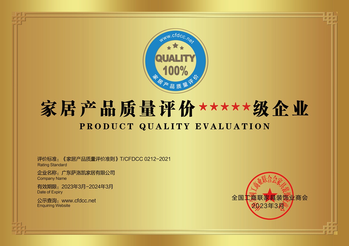 家居產(chǎn)品質(zhì)量評(píng)價(jià)5星級(jí)企業(yè)有效期至2024年