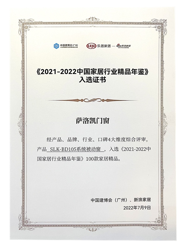《2021-2022中國(guó)家居行業(yè)精品年鑒》入選證書(shū)2022