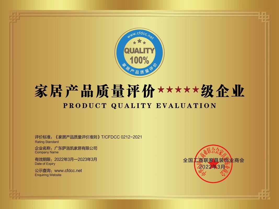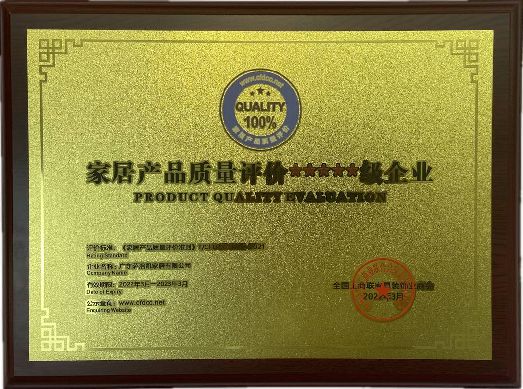 家居產(chǎn)品質(zhì)量評(píng)價(jià)5星級(jí)企業(yè)有效期2022
